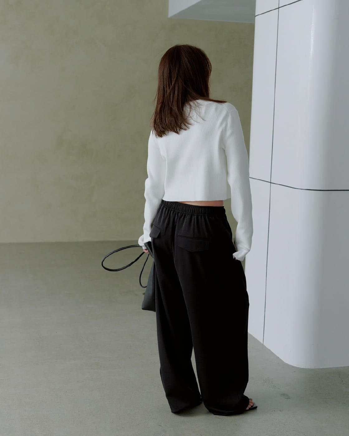Knit tops 15,400yen / Pants 23,100yen Shoes 24,200yen / Bag 29,700yen